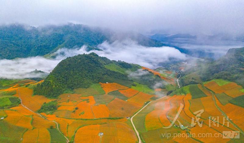 时下,正值万寿菊盛开时节,云南省文山壮族苗族自治州丘北县近25万亩万寿菊竞相开放,到处呈现一幅美丽的乡村丰收图景。