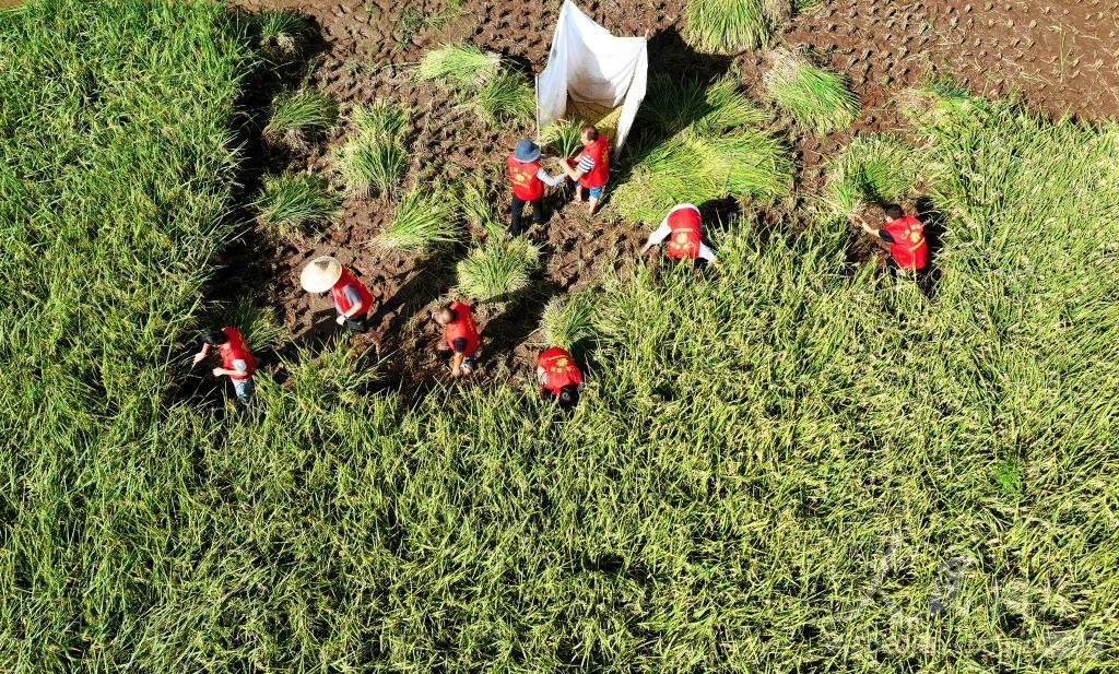 当下,四川省眉山市仁寿县各村(社区)积极组织以党员干部为主的“帮帮团”,深入田间地头,帮助缺少劳动力的农户及时收获稻谷,确保颗粒归仓。