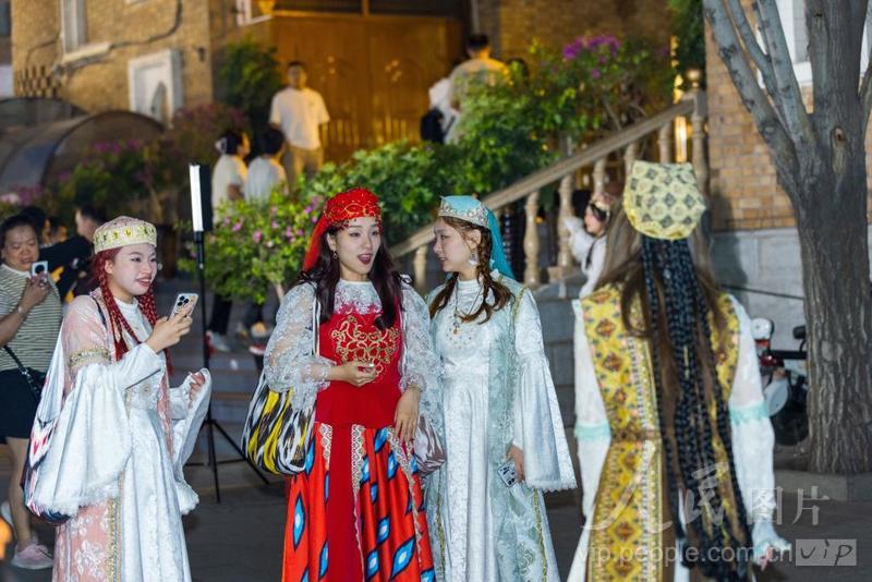 上传时间: 2024-08-14 13:05:09 图片说明: 2024年8月13日,游客在新疆国际大巴扎景区游玩。
