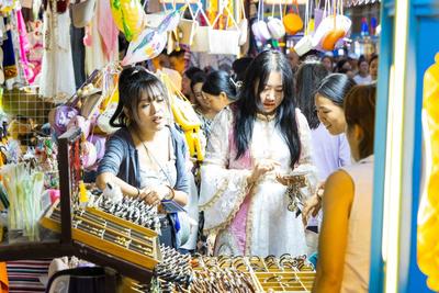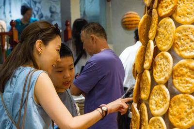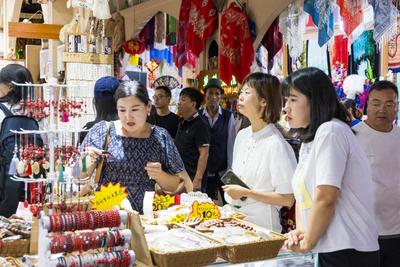 上传时间: 2024-08-14 13:05:09 图片说明: 2024年8月13日,游客在新疆国际大巴扎景区购物。