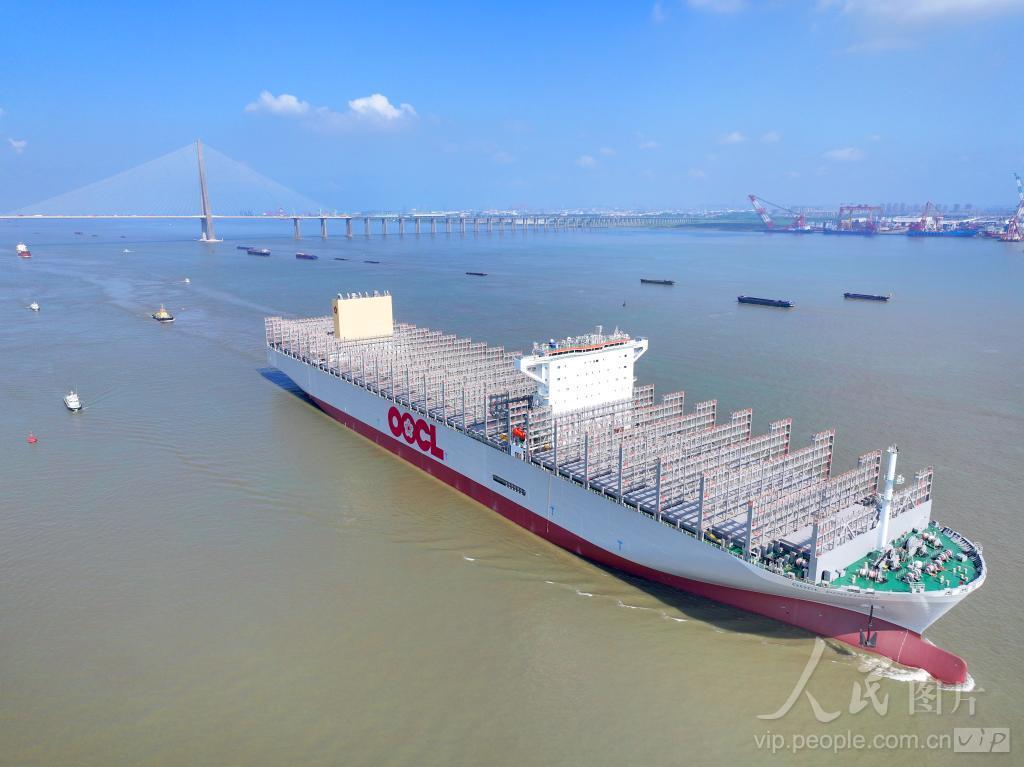 2024年8月30日,中国自主研发设计的新一代高性能超大型集装箱船“东方葡萄牙”轮在江苏省南通市崇川区开启试航之旅。该船船长399.99米、型宽61.3米,型深33.2米,可装载24188个国际标准集装箱。