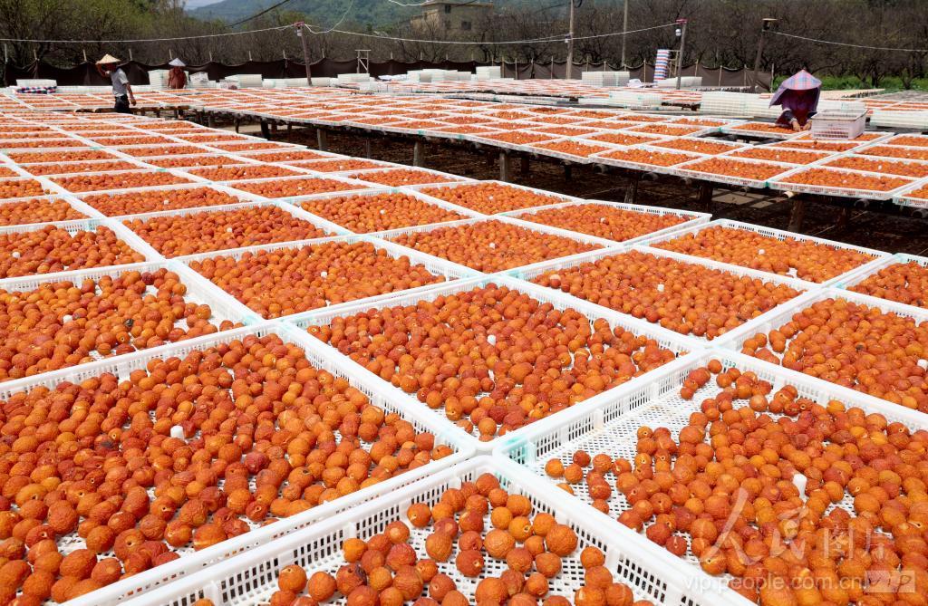 初秋时节,福建省福州市永泰县的李果迎来全面丰收,村民们抢抓晴好天气,在农家房屋前后木晒架上晾晒李干。