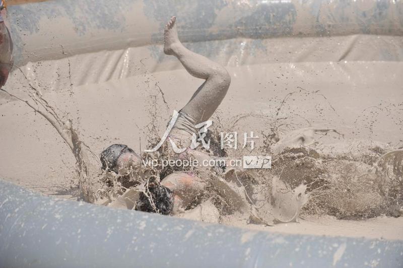 2009年5月3日,两名女孩在东湖沙滩浴场进行泥浆摔跤比赛。 当天,共有40多名女孩参加“湘鄂中外女子泥浆摔跤大赛”,争夺冠亚军。泥浆摔跤既是健身运动又是娱乐表演,狭小的摔跤台上铺一层泥浆,两个女孩使出浑身解数欲将对手摔倒,同时还要小心不被脚下的泥浆滑倒。这些泥浆虽然看上去脏兮兮的,它可是具有美容功效的深海泥,在摔跤过程中,泥浆里的微量元素及有机营养物能够渗入皮肤,据说可以使皮肤细腻、有弹性且更加柔润靓丽。另外,摔跤时双方的相互挤压等于是相互按摩,大汗淋漓之后有一种说不出的畅快感觉。
