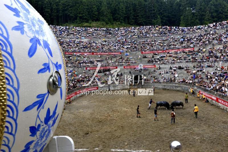 9月5日,贵州省榕江县七十二侗寨首届侗家牛王争霸赛上,两头牛在打斗。