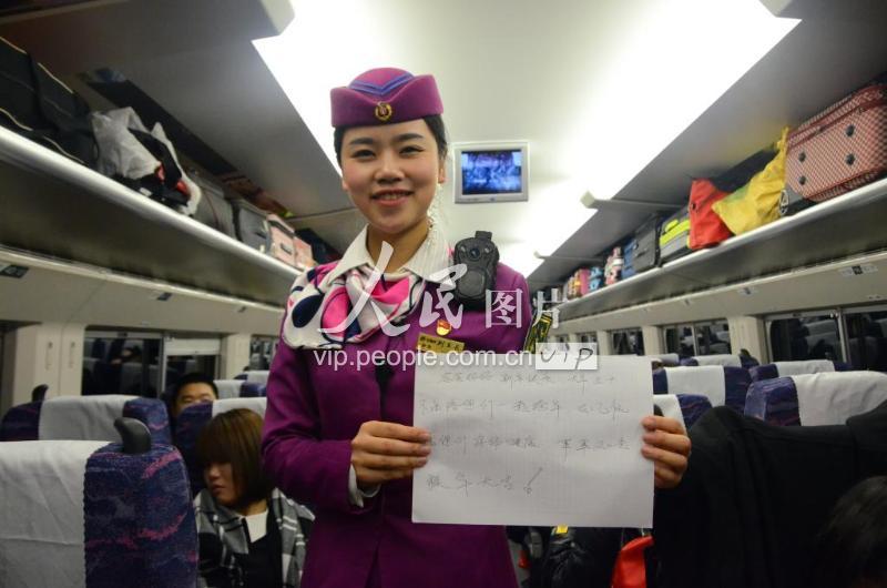 2016年2月3日,贵广动车上,今年已是动妹陈瑶第9个春运,25岁的她自从来到贵阳客运段工作就再也没有回老家四川南充过一次完整的春节。今年依旧,大年三十、初一、初二值乘的她想对家里说出那一遍遍提及的老话,祝愿家人身体健康,事事如意,值乘结束后就回家看望你们。